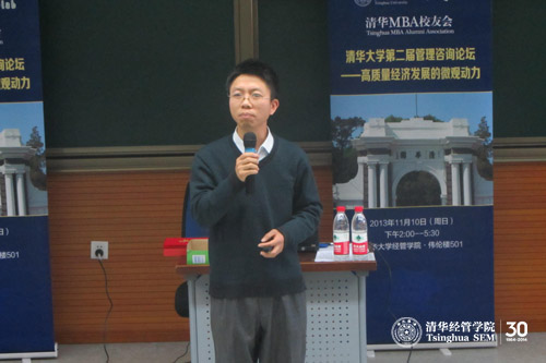 2013年11月10日下午,由清华x-lab(清华x-空间——清华大学创意创新创业教育平台)与清华MBA校友教育咨询协会联合主办的“高质量经济发展的微观动力——第二届管理咨询论坛”在清华经管学院伟伦楼501教室举办。清华MBA校友教育咨询协会副会长,北大纵横战略咨询管理有限公司合伙人李强先生担任论坛主持,60余位校友和同学到场参加。
