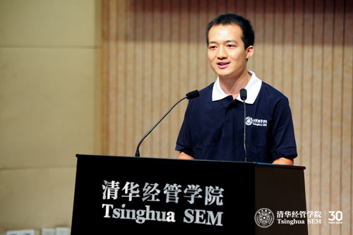 清华经管学院2010级金融专业博士冯明作为老生代表发言,他希望学弟学妹们能怀揣梦想读书,能对经济现实饱含一种温情与敬意。清华人不仅仅要放飞自己的梦想,同时也应当有勇气去成就更多人的梦想。