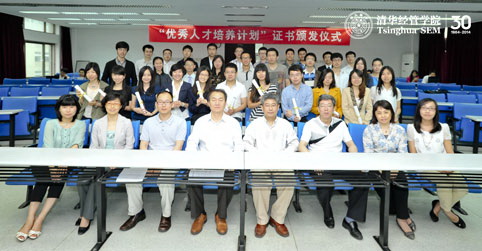 2013年6月7日,清华大学经济管理学院2009级本科生“优秀人才培养计划”证书颁发仪式举行。教学办主任朱玉杰教授主持仪式,副院长白重恩教授、高建教授、何平教授、教学办邢立君、周光老师,通过该项目的同学以及即将进入此项目的2010级部分同学参加了本次颁证仪式。