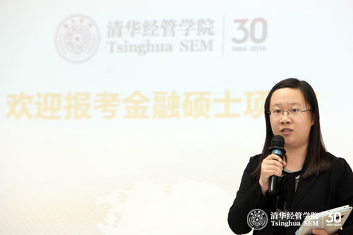 2013年6月2日,清华大学经济管理学院金融硕士2013年招生宣讲会在学院伟伦楼举行。宣讲会旨在向校内外同学介绍金融硕士项目和暑期优秀大学生夏令营的招生概况。经管学院副院长郦金梁教授、硕士项目办公室执行主任张亦萌老师出席了活动。本次宣讲会由金融硕士项目学术主任刘淳教授主持。