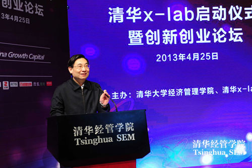 2013年4月25日,清华x-lab启动仪式暨2013创新创业论坛在清华大学经济管理学院伟伦楼报告厅举行。清华大学党委书记胡和平、经济管理学院院长钱颖一、机械工程学院院长尤政、理学院院长薛其坤、信息科学技术学院常务副院长张佐、美术学院院长鲁晓波、医学院党委书记洪波、航天航空学院党委书记李俊锋、环境学院副院长左剑恶、建筑学院副院长刘健、材料学院副院长林元华、公共管理学院党委副书记谢矜、工程物理系主任助理刘井泉共同启动了清华x-lab---一个面向大学、超越学科界限、发现和培育创意创新创业人才的新型教育平台。