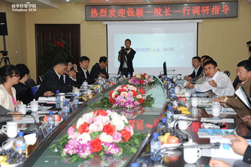 随后,钱院长一行来到内蒙古满世投资集团,满世集团集煤炭产运销、房地产开发、百货商贸、金融服务、生态旅游五大产业协同发展,被评为内蒙古最具发展潜力品牌。在满世集团党委书记、副总裁、清华EMBA08级校友刘至主持下,钱院长与满世集团董事长刘满世、满世集团总裁刘强就宏观经济走向、煤炭企业发展时机等问题进行了交流。