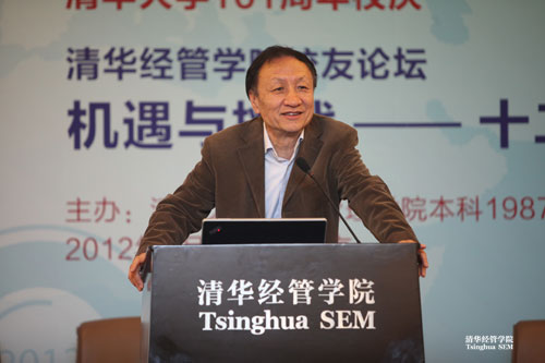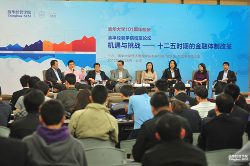 4月28日,作为清华大学101周年校庆系列活动之一,以“机遇与挑战——‘十二五’时期的金融体制改革”为主题的值年校友论坛在清华经管学院舜德楼418室举行。在春意盎然的校庆纪念日,经1987级校友济济一堂,忆同窗旧事,话国家未来。