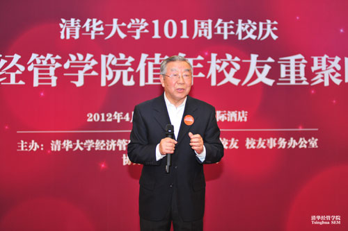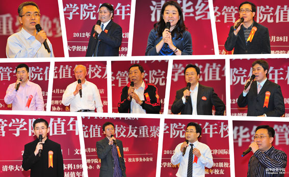 4月28日晚,清华经管学院值年校友重聚晚宴在文津国际酒店举行。毕业三十周年的经硕1979级和干研一期校友,入学三十周年的经1982级和经硕1982级,毕业二十周年的经1987级、经硕1989级,入学二十周年的经1992级、经硕1992级、MBA1992级,毕业十周年的经1998级,入学十周年的MBA2002级、EMBA2002级等各年级共200余位校友参加了晚宴。清华大学经济管理学院院长钱颖一教授、党委书记杨斌教授、副院长廖理教授、党委副书记焦捷教授,与董新保、杨延龄、潘家轺、李端敏、罗绍彦、张渌、侯炳辉、杨炘、张德、徐瑜青、华如兴、陈章武、李子奈等离退休教师,蓝伯雄、姜旭平、石永恒、张陶伟、朱武祥、宋学宝、曲庆、林丽慧、段志蓉、郦金梁、卫强、何平等在职教师一同出席了宴会。