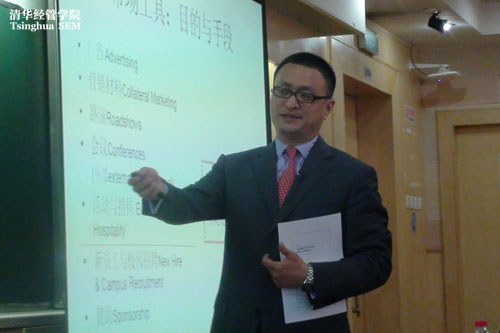 2012年3月29日下午,由清华大学经济管理学院中国创业研究中心和共青团清华大学委员会联合主办的第十八期技术创业系列讲坛在清华经管学院举行。瑞银投资银行和瑞银集团董事、清华校友刘旭,与清华学子分享了品牌与市场之道。
