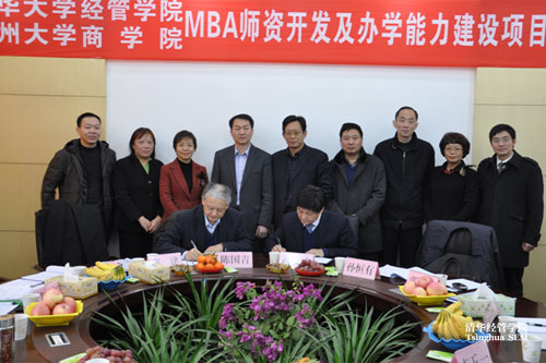 2011年11月26日和12月23日,项目组成员清华经管学院副院长陈国青、院长助理高建、MBA教育中心常务副主任毛东辉、MBA教育中心教学管理部总监秦文一行分别到河北工业大学和郑州大学调研MBA项目需求,双方就项目的组织管理、教师进修、授课指导、交流以及项目延展等进行了进一步磋商,并形成最终实施方案。陈国青副院长分别和河工大管理学院院长王云峰、郑州大学商学院院长高友才代表双方学院正式签署了项目实施方案协议。