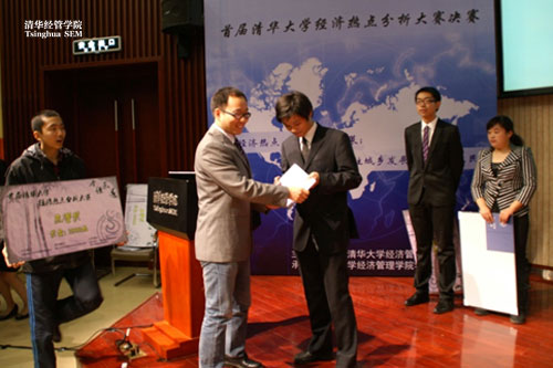 今年是“十二五规划”开局之年,比赛要求参赛选手以家乡经济社会热点和“十二五规划”为切入点进行经济政策的分析讨论。本次比赛共有来自23个院系的48支团队、共144名同学参加。晋级决赛的8支队伍按照“通过实证分析,给出政策评价,提出政策建议”的思路进行展示,对家乡发展提出了自己的看法和建议。答辩过程紧张严肃而又妙趣横生,十足地展现了清华学生的风采。同时,开放的决赛形式吸引了大批同学观战,现场观众的互动、思维火花的碰撞也进一步营造了比赛现场的氛围。