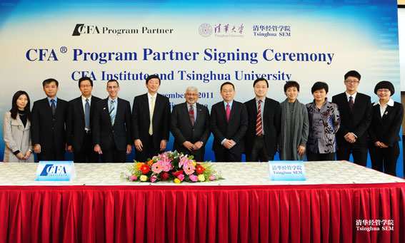 12月9日,清华大学经济管理学院与CFA协会正式宣布建立CFA课程合作伙伴关系。清华大学经济管理学院金融硕士课程将涵盖CFA课程考生知识体系中大量内容,包括CFA协会《道德操守》和《专业行为准则》等。