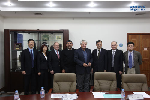 11月16日,SAP 联席创始人哈索教授(Prof. Dr. h. c. Hasso Plattner)一行访问了清华大学。清华大学副校长谢维和及清华大学经济管理学院院长钱颖一分别会见了来宾,清华经管学院弗里曼讲席教授李稻葵等也参加了会面。