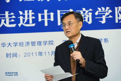 11月22日下午,由清华大学经济管理学院和清华大学政治学系联合举办的首届“政治学走进中国商学院”论坛在清华经管学院举行。经管学院院长钱颖一教授和清华大学政治学系系主任张小劲教授分别致辞,清华大学政治学系多位知名学者发表学术报告。论坛由清华经管学院副院长白重恩教授主持。