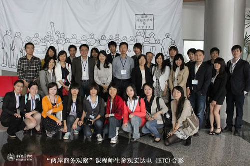 除知名教授的专题讲座外,两岸师生还相继参观访问台湾银行、法蓝瓷、宏达国际电子股份有限公司(HTC)、华硕公司四家台湾知名企业,其中宏达电(HTC)历来较少接受外部参访,此次专为本联合课程的访问提供特殊开放。台湾企业在文化传承、自主创新和全球化发展等方面的成就给清华师生留下了深刻印象,交流过程中,清华同学就商业模式、知识产权、企业战略等问题与企业代表进行了沟通,并因独特的视角、敏锐的洞察力和积极向上的精神面貌受到了台湾企业代表的高度好评。