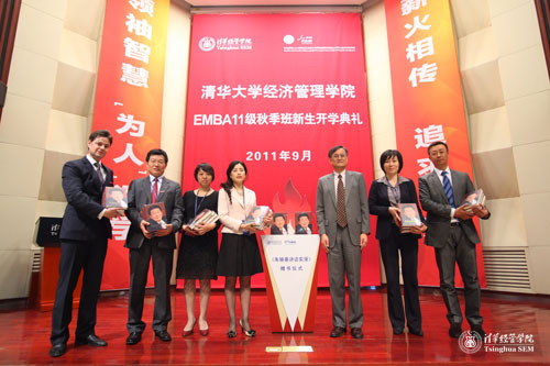 9月21日,清华大学经济管理学院迎来了EMBA2011级秋季班的224名企业家新生,他们是清华在新百年里招收的第一批EMBA学生,平均年龄42岁,平均工作年限19年,83%的学生来自高层管理岗位。同期入学的还有清华-花旗EMBA奖学金媒体培训课程(第七期)的160名媒体精英人士。