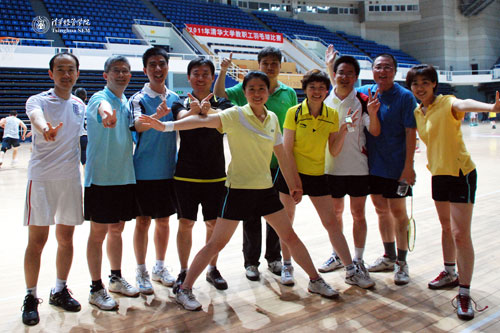 5月下旬,校工会组织的“2011清华大学教职工羽毛球比赛”在综合体育馆擂响战鼓。在历时两周的比赛中,我院教职工羽毛球队男女队员在领队张力军老师,教练谢赞老师的带领下,积极搏杀,不放过每一个得分机会,分别以3:2,5:0,3:2和3:2力克自动化系,物业中心,机械系和附中,凭借不败的战绩以小组第一的身份出线,终于实现了3年以来首次打入16强的突破。进入第二轮后,由于人员不齐,实力存在差距,惜败于校医院,止步于8强。本次参加比赛的主力队员包括沈晔,郝秀清,李谦,刘惠萍,谢赞,刘涛瑞,高明,高峰,卫强。他们在繁忙的工作和家庭事务之余,积极克服困难,以饱满的精神出现在赛场,努力拼搏,通力协作,取得了不俗的成绩。同时,学院工会也诚挚邀请各位同事加入羽毛球队,贡献自己的一技之长和满腔热情,积极锻炼身体,并争取在将来的比赛中取得新的佳绩。(供稿经管学院工会编辑沟通办)