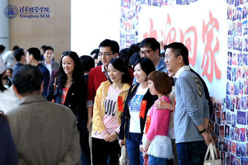 返校校友重访阔别多年的美丽的校园,有的是全家同行,有的是全班集合,学院的每一间教室都荡漾着节日的气氛。经济系校友(包括1947届、1948届、1949届的老校友)重返学院,参加了纪念清华大学经济学系建系85周年庆祝仪式,聆听了由诺贝尔经济学奖获得者马斯金教授首讲的主题为“谈金融危机的成因与对策”的清华大学陈岱孙经济学纪念讲座;干研一期、二期、三期的校友与老师们重聚,畅谈入学30年的感怀;入学20年的经硕1991班校友协同首届MBA校友(MBA1991),共同举办了“师生团聚——相识20周年茶话会”。举办班级重聚活动的还有:经硕1987-管硕班,经硕1990-管硕班,MBA1992班,经1997级的1班、3班和4班,经硕1995班,经2001-2班,经硕2001-2班,MBA2001级的I1班、F1班和F2班,MBA2005级铁道部班等。大家与昔日的老师欢聚一堂,重温在学时的难忘往事,交流多年的人生体会,表达了对学院对老师的感恩之情和美好祝愿。其中,经2001-2班在重聚活动中还设立了“清华百年纪念校友奖学金”,以微薄之力回馈母校、助力学生发展。经1997-2班还统一制作了返校班衫。有的校友班级还向学院赠送了礼物,有的校友还特意创作了对联和诗歌。