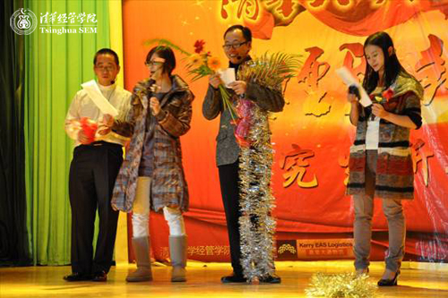 12月27日晚7点,清华大学经济管理学院“经致新声”研究生新年晚会在蒙民伟楼多功能厅举行。校党委研究生工作部部长武晓峰,清华经管学院院长钱颖一,党委书记杨斌,副院长陈国青、廖理、白重恩、夏冬林,党委副书记赵冬青,院长助理高建等领导来到晚会现场,与经管研究生同学共同庆祝新年的到来。钱颖一教授代表学院致辞,祝贺晚会的成功举办,并向全体研究生同学致以新年的祝福。多位学院教师也通过录制的视频,向研究生同学寄予新年的期许和祝愿。
