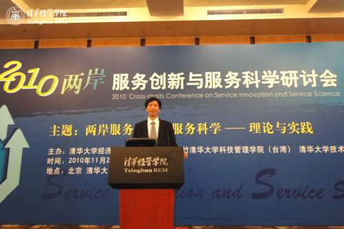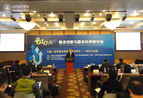 继2007、2008“中国服务创新研讨会”在清华大学成功举办后,2010年11月20日,由清华大学经济管理学院、教育部人文社会科学重点研究基地——清华大学技术创新研究中心(RCTI)和新竹清华大学科技管理学院联合举办的“两岸服务创新与服务科学研讨会”在清华大学举行。这是迄今为止两岸学术界和产业界在该领域内首次合作举办的高水平学术会议。