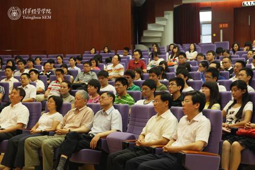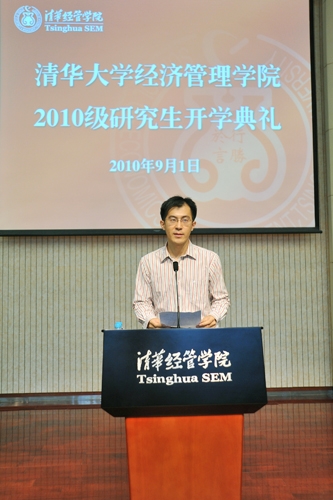 2010年9月1日上午十时许,清华大学经济管理学院2010级研究生开学典礼在伟伦楼报告厅举行。清华经管学院院长钱颖一教授、副院长陈国青教授、副院长夏冬林教授、党委副书记赵冬青教授、院长助理高建教授、以及教学办主任朱玉杰教授等出席了开学典礼。开学典礼由清华经管学院金融系何平教授主持。