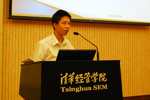 清华经管学院MBA教育中心主任高旭东教授致欢迎辞,并和大家分享了自己对于创新的理解。高旭东教授说,从我国经济发展的经验来看,坚信西方理论,采取“引进—消化—吸收”模式的企业,发展往往不太顺利;而那些从一开始就坚持自主创新的企业,经过数十年的发展,反而可以登上国际竞争舞台。例如,中国的电信设备产业已跻身全球前列,华为目前的市场份额已位居世界第二,并且有望超越爱立信,成为世界第一。高旭东教授建议,培养创新能力最有效的方法,是与真正有创新能力的人交流,向他们学习。