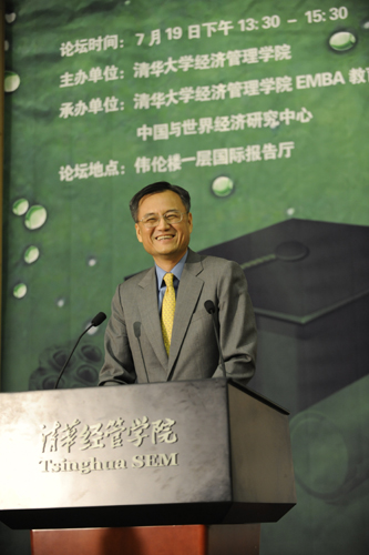 金融系主任、央行货币政策委员会委员李稻葵教授以“破解迷局:2010年下半年宏观经济走势及政策分析”为主题进行演讲。他从国际、国内两个方面分别进行了分析,并提出国际形势在未来五年将出现重大格局变化:发达国家将进入低速发展时期,但不会出现二次探底;发展中国家将进入蓬勃发展期。同时中国的经济发展格局也将发生变化:经济高速增长的潜力没有改变,但新的经济发展点、中国经济消费格局、中国劳动用工情况都将发生变化。