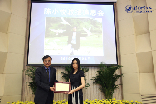 2010年4月24日下午,清华大学经济管理学院教授、前北京国家会计学院院长陈小悦教授追思会在清华经管学院伟伦国际报告厅举行。清华大学党委副书记、纪委书记、校务委员会副主任韩景阳教授,清华经管学院院长钱颖一教授出席追思会。会议由清华经管学院党委书记杨斌教授主持。