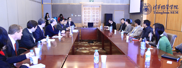 2010年3月9日上午,清华大学经济管理学院多名教授与来自美国宾夕法尼亚大学沃顿商学院的客人进行会谈,围绕“沃顿互动媒体计划(Wharton Interactive Media Initiative, WIMI)”展开了交流与讨论。