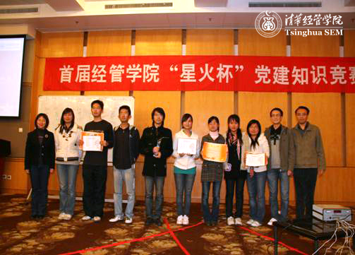 在伟大祖国建国六十周年和中国共产党十七次四中全会胜利召开之际,“星火杯”党建知识竞赛的成功举办进一步提高了学院广大同学的爱党爱国热情。通过本次比赛,同学们增进了对党和国家历史的了解,明确了作为新时代社会主义事业建设者和接班人的责任与使命。“星火杯”也将作为清华经管学院学生党建工作的一项重要活动不断传承,为提高同学们的理论修养,扩大党建工作的影响力发挥新的更大的作用。(编辑:李经 供稿:TMS经管分会供稿)