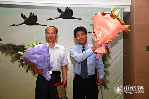 酒会上还颁发了清华大学2009年“良师益友奖”和清华经管学院2008-2009学年度“学术新秀奖”。白重恩老师和吴栋老师获得由研究生同学投票评选出的“良师益友”奖;金融系博士生王正位、杨震宁,经济系博士生刘霖林、李乐夫获得“学术新秀奖”。