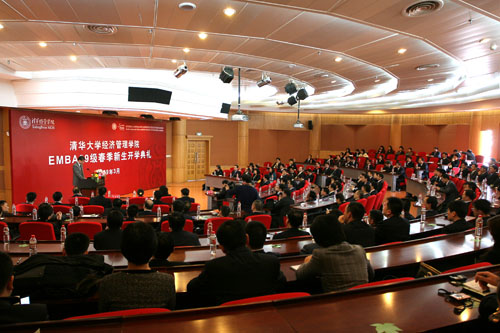 3月25日,清华大学经济管理学院EMBA2009级春季班开学典礼举行,166名优秀的企业家和政府官员加入清华EMBA大家庭。院长钱颖一,常务副院长陈国青,党委副书记陈章武,副院长、EMBA项目主任廖理等出席开学典礼。典礼由院党委书记杨斌主持。