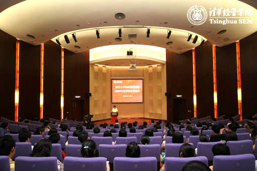 7月4日晚7时,清华大学经济管理学院2008年夏季毕业欢送会在学院伟伦楼国际报告厅隆重举行。院长钱颖一,党委书记杨斌,常务副院长陈国青,院长助理钱小军等领导和老师出席了欢送会。主管学生工作的党委副书记朱岩主持了欢送会。