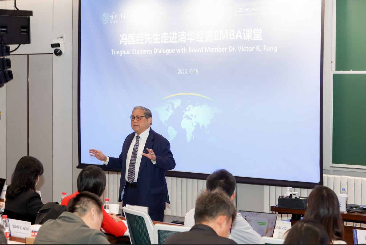 Professor Fung speaks with Tsinghua SEM's EMBA students.