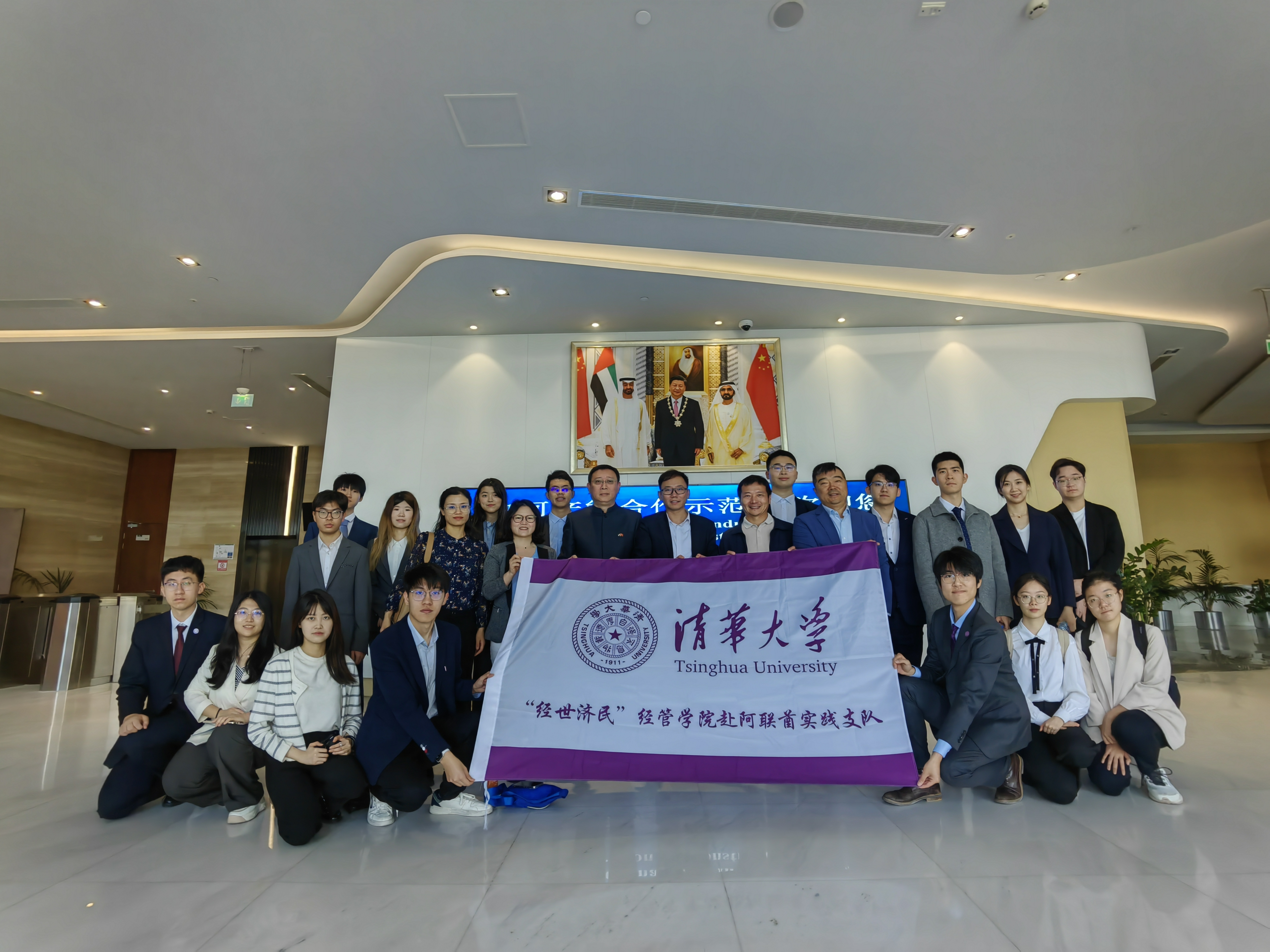 Tsinghua SEM squad poses for a group photo with diplomats from the Chinese Embassy in the UAE.