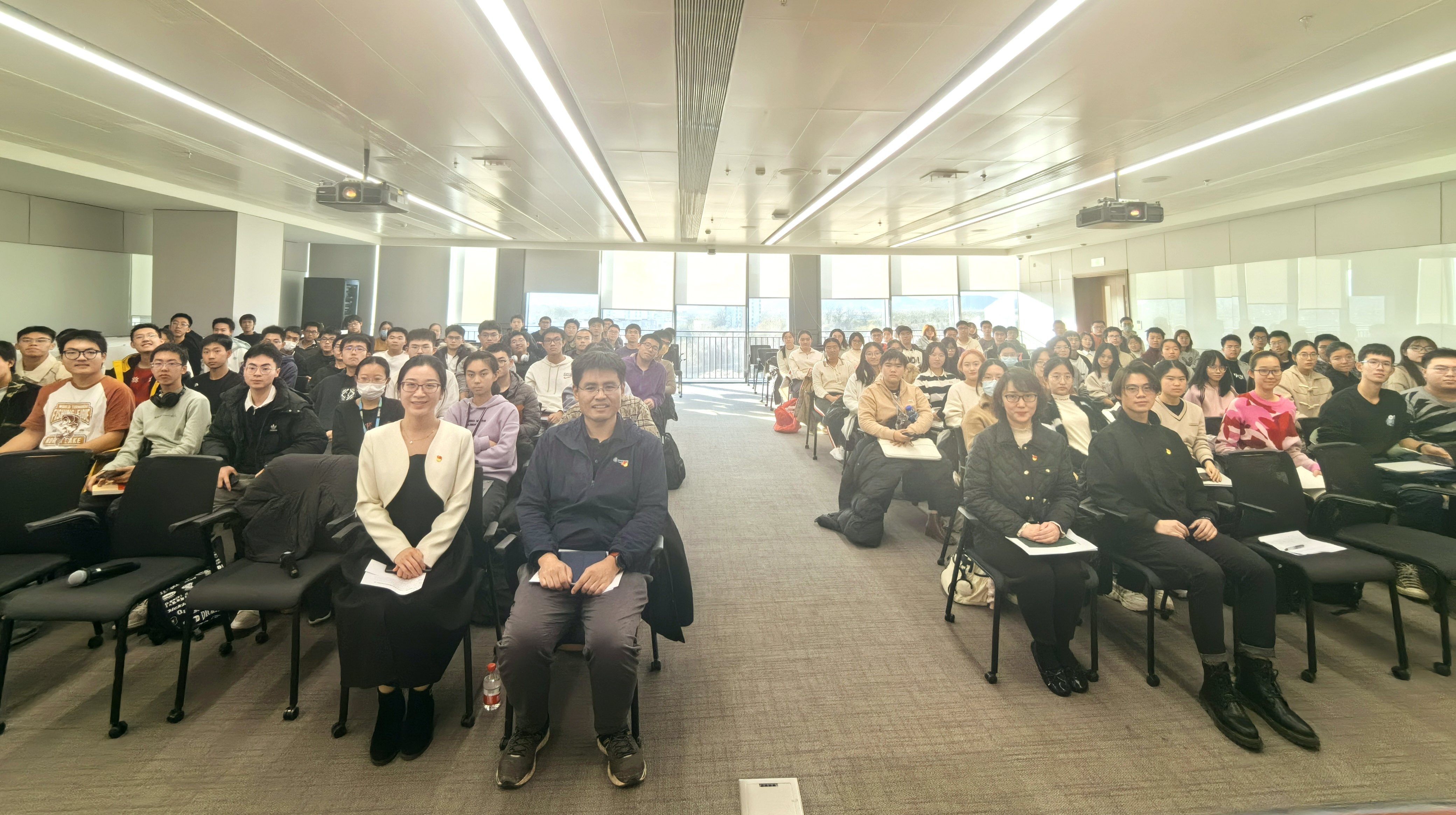 提问交流环节,现场同学就“科斯定理在生活中的应用”“如何处理大学和社会中的人际交往关系”“港澳台同学如何认识党”“保研和实习如何权衡”“经济学对于未来发展的预测效果”等问题,与陈煜波老师进行互动。陈煜波逐一回答了同学们关心的问题,并鼓励同学们积极探索,培养批判性思维,锤炼历史眼光。