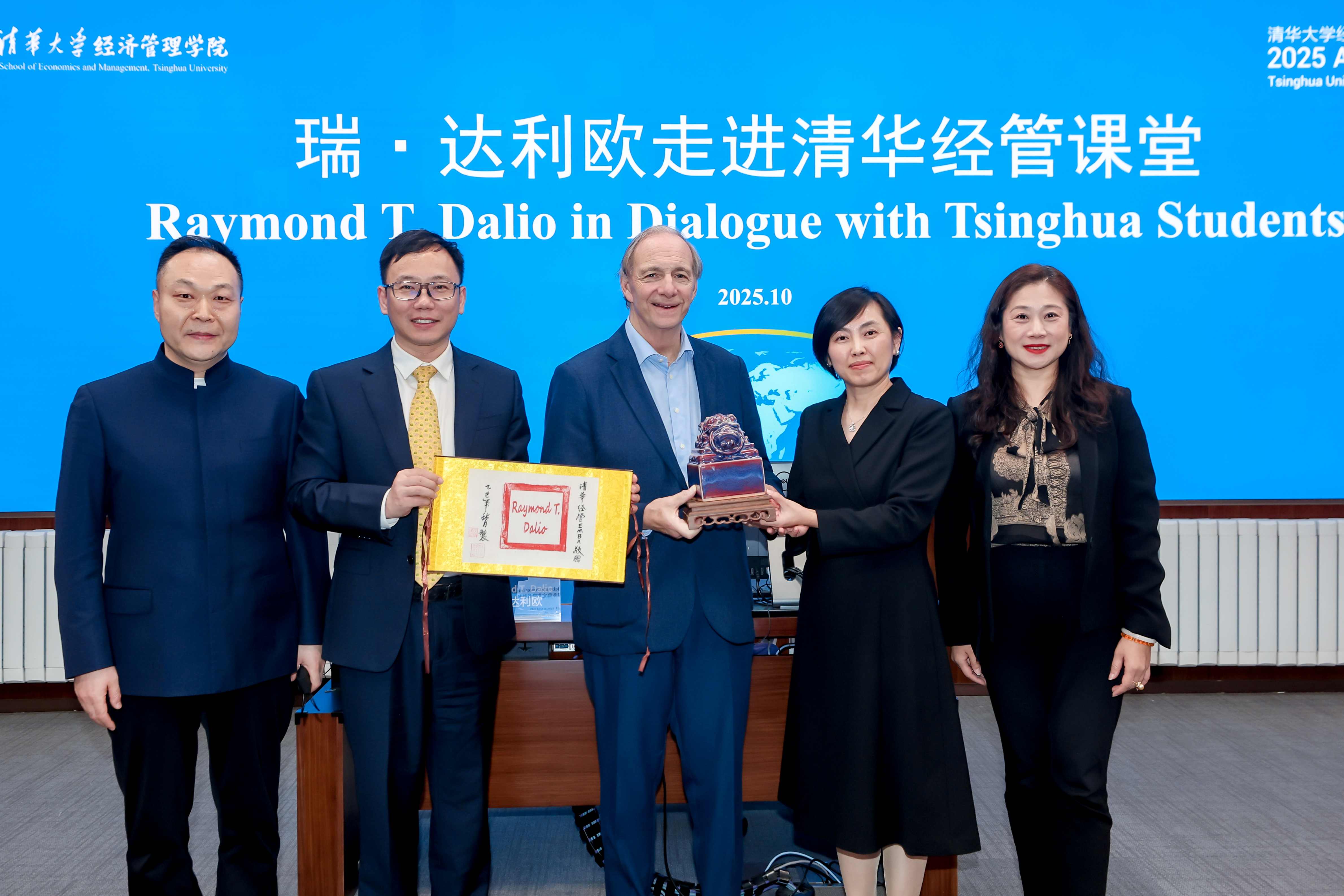 2025年10月17日,清华经管学院顾问委员会委员、美国桥水投资公司创始人及导师瑞·达利欧(Raymond T. Dalio)走进清华经管EMBA课堂,以“大周期与秩序重构”为题授课,围绕投资逻辑、全球经济周期与未来趋势等议题,与300余名清华经管EMBA、TIEMBA、未来科技项目的学生展开分享与交流。学院党委书记薛健主持此次活动,学院副院长何平、院长助理张晨、院长办公室主任顾英杰、EMBA教育中心主任庄丽出席活动。