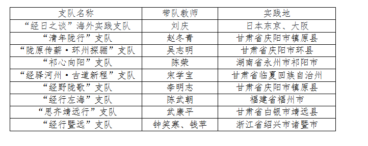 附:各实践支队指导教师名单
