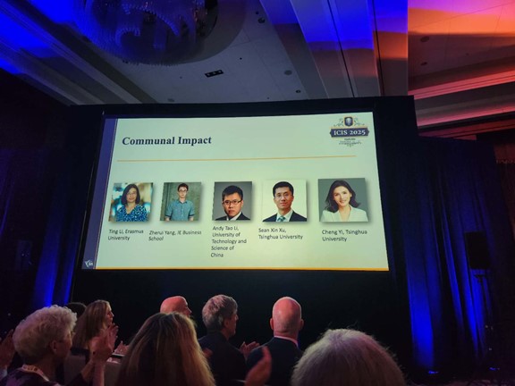据了解,这是该奖项自设立以来大陆学者第二次获奖,也是清华经管学院首次获此殊荣,标志着学院研究成果在社会影响力与实践价值层面获得了国际权威学术组织的高度认可,体现了学院在信息技术与社会责任深度融合方向上的研究实力与国际影响力。