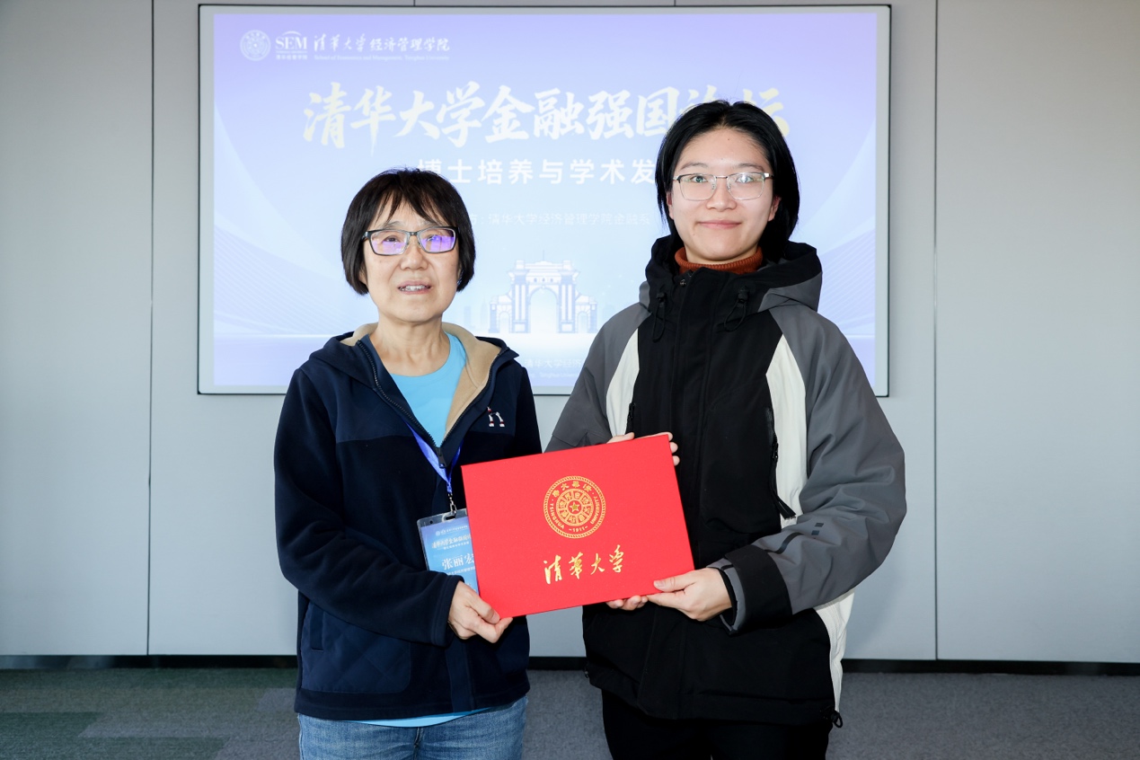 为表彰博士生在学术研究中的突出表现,鼓励学生积极投身科研,共同营造浓厚的校园创新氛围,会议设置最佳论文奖,以鼓励具有创新性、严谨性和学术潜力的研究成果。该奖通过投票方式授予学院金融系博士生缪婧怡,学院金融系教授张丽宏为获奖者颁奖。