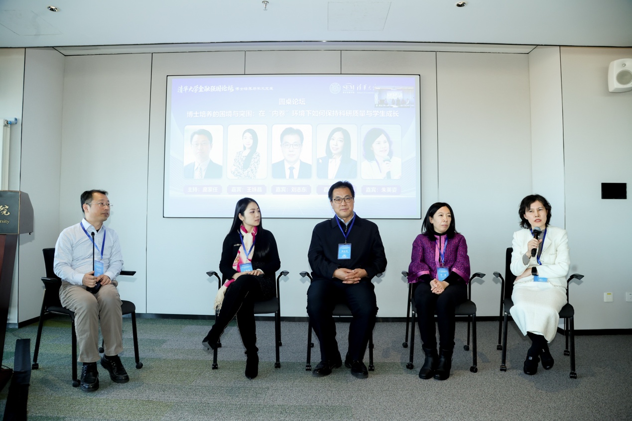 20日上午的圆桌论坛主题为“博士培养的困境与突围——在“内卷”环境下如何保持科研质量与学生成长”,由金融系副教授庞家任主持,朱英姿,北京大学光华管理学院副教授李波,中央财经大学教授、管理科学与工程学院院长刘志东,同济大学经济与管理学院教授王姝晶参与讨论,从学科特征、学术生态、培养目标与方法范式等角度,回应“为何更卷、如何破局”的核心问题。