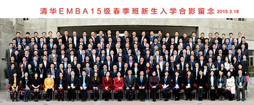2015年3月18日下午,清华大学经济管理学院EMBA2015级春季班开学典礼暨入学导向在伟伦楼报告厅举行。来自全国各地近200位清华EMBA的新生齐聚一堂,共同见证自己成为清华人的庄重时刻。清华经管学院院长钱颖一教授、EMBA教育中心主任王勇博士、副主任贾莉、孙美琦老师,主任助理刘圣华老师等一同参加开学典礼。
