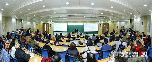 清华经管学院主管教学工作的院长助理、领导力与组织管理系钱小军教授主持了本场讲座并致开场辞。她介绍道,陈嫦芬老师曾经为经管学院MBA学生授课并担任企业家导师,当时陈老师对学生的要求非常严格,但学生们都非常感激并尊重她。当天讲座现场,许多陈嫦芬老师当年的学生特意赶来参加,现场更像是一次温馨的聚会。用陈老师自己的话来说,“这是一场缘分”。