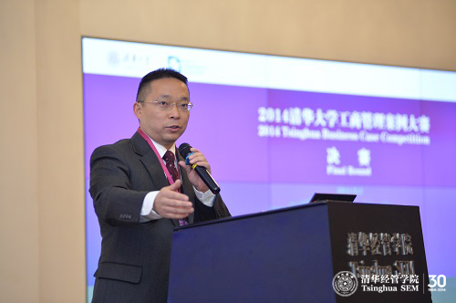 在点评颁奖环节,评委会联席主席、清华经管学院管理科学与工程系谢滨教授在总结发言中说,大赛的真正目的不在于比拼优劣,而是一个学习机会。从这一点看,参赛学生都是赢家。清华经管学院党委副书记焦捷教授总结说,案例大赛的魅力在于,它是训练思维的手段、检验教学的方式及考察学以致用的途径;同时,案例大赛挑战学生的智慧。在谈到今晚决赛亮点时,他说,好的战略在于精准定位,把握行业趋势,分析、解决问题,拥有创意。而第一个亮点就是,许多团队都提出了极佳创意;第二个亮点是不少年轻面孔出现在赛场,其中包括四位本科生参加;第三个亮点是团队组合国际化,这是经管学院不断迈向国际化的体现。