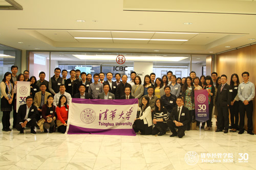 2014年4月26日,值清华大学经济管理学院建院30周年之际,学院50余位校友在纽约齐聚一堂,重叙手足情谊,回忆宝贵时光,同庆学院华诞。同时,多位海外校友代表就职业发展与人生规划与现场的年轻校友们进行了分享和交流。