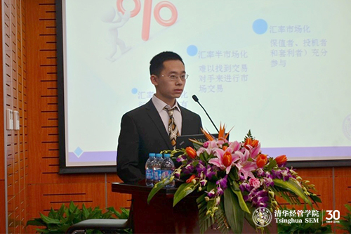 清华经管学院阮海博同学的演讲主题为《谨慎看待上海自贸区资本账户开放政策》。他对2013年12月2日出台《关于金融支持中国(上海)自由贸易试验区建设的意见》进行了解读,并通过实证方法对资本账户开放与货币危机的关系进行了研究,最后针对如何避免监管套利,如何进行风险控制提出了自己的观点。峰会评委张纯信教授对清华经管学院选手的表现给予了高度赞赏。(供稿:学生工作组)