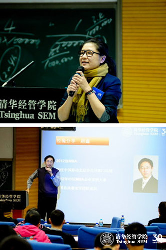 之后,在往届案例大赛取得优异成绩的2010级MBA学生任玥和2012级MBA学生赵鑫分享了自己参加案例大赛的经历和体验。任玥介绍,一个好的团队是比赛成功的基础,她提醒同学们要把握好时间,把握好现场展示的节奏。赵鑫将成功经验总结为三句话:要有赢的团队、要有赢的规矩、要有赢的方法。