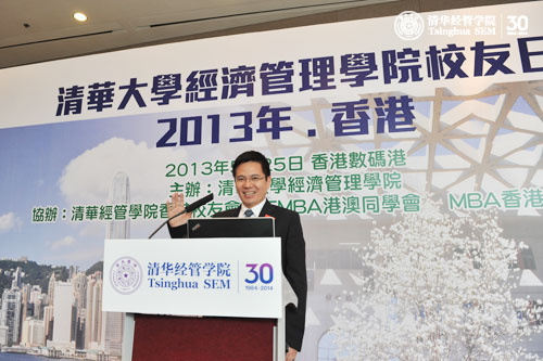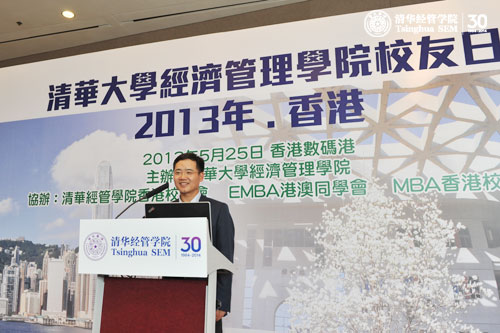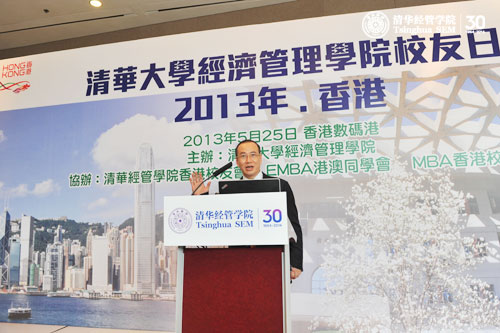 2013年5月25日,清华大学经济管理学院香港校友日在香港数码港举行。来自香港清华同学会、学院校友会、MBA校友会、EMBA同学会的各地校友代表及香港校友共300多人,以及从学院赶来的领导、老师欢聚一堂,参加了本次活动。