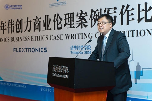 清华经管学院党委书记杨斌教授代表学院对伟创力公司的大力支持,对参与评审的各位评委表示由衷的感谢。作为商业伦理社会责任课的授课教师之一,杨老师说:希望更多的企业能够认识到商业伦理的紧迫性,而不只是将其看作“时髦的谈资”。同时,他对参赛作品提出了要求:商业案例是商学院的源头活水,但商业伦理案例的选择往往会让学生觉得艰难,因为与人相关、与价值观、世界观、幸福观相关。希望大家把案例放在整个商业运营环境下写作,而非脱离实际环境。