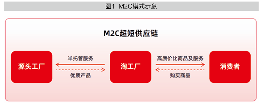淘工厂是淘天集团面向产业带源头工厂,并为源头工厂提供电商“半托管”服务的业务平台。在淘工厂“半托管+产业带”的模式中,源头产地工厂只负责生产、发货和售后,淘工厂为工厂提供数字化选品、智能化定价、营销托管、供应链优化、物流等保姆式服务。淘工厂采用M2C模式,一端连接制造商,一端连接消费者,去掉库存、物流、总销、分销等中间环节,进一步降低成本,在保障商品质量的基础上使消费者可以直接买到高质价比的产业带源头工厂产品(见图1)。截至目前,淘工厂通过M2C模式直连产业带源头工厂和消费者,已经连接全国30个省份、240个城市的1800多个核心产地工厂,带动近10万工厂孵化新品爆品,拓展工厂销售渠道,并逐步实现产业转型。过去一年,淘宝类目月销量冠军排名第一的淘工厂商品有1700多个,多家工厂在淘工厂的年营业额超过1亿元。在消费端,淘工厂已链接超3亿消费者。