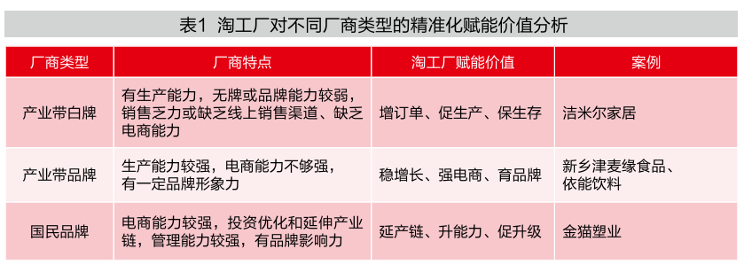 淘工厂对国民品牌类型工厂的赋能价值