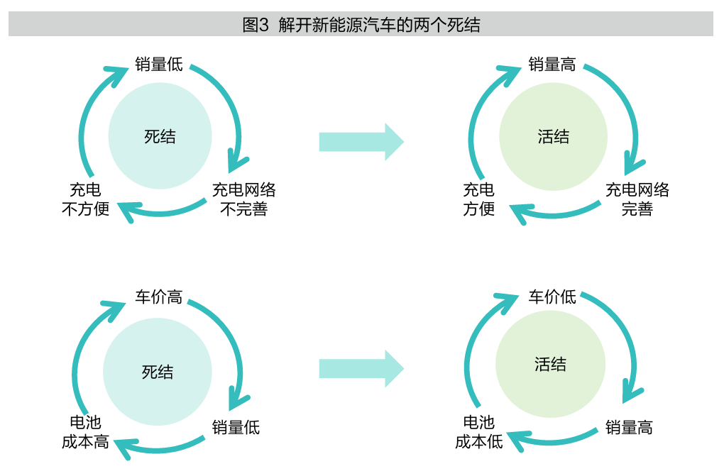 新能源汽车电池价格和充电网络是影响顾客购买行为的主要因素。如图3所示,充电网络不完善和电池成本高是制约新能源汽车发展的两个死结:一方面,电池成本高导致新能源汽车价格高,直接影响汽车销量;另一方面,充电网络基础设施不完善导致充电不方便,也直接影响汽车销量。为了打破死结,许多车企都在探索适合自己的补能商业模式。进入补能新时代后,越来越多的新能源汽车企业、充电服务企业及高科技企业开始布局超充市场。例如,2024年华为率先提出计划在全国340多个城市部署超过10万个全液冷超快充充电桩。此外,广州、深圳等城市提出要建设“超充之都”“超充之城”,反映出地方政府在支持新能源汽车基建方面的决心。换电模式也逐渐成为一种用户喜爱的高效补能商业模式。截至目前,我国主要城市的换电站数量已超过3600座,基本解决了一般城市消费者的里程焦虑。