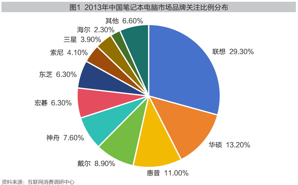 2013年,PC全球市场进入存量阶段,每个季度笔记本的销量数据几乎都处于下滑态势。面对存量竞争,厂商们或以降价激发消费者购买热情,或研发形态与功能各异的笔记本,满足消费者日益多样化的需求。NB事业部面临的情况更加棘手。此时,路凯林正担任海尔集团笔记本事业部总经理,看着海尔笔记本电脑仅占到市场2.3%的品牌关注度(见图1),“哪里去寻找新增量?如何实现新增长?怎样才能迈入新周期?”成为他每天都在思考的问题。