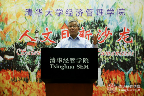清华经管学院副院长、管理科学与工程系教授徐心在“人文日新沙龙”活动上致辞